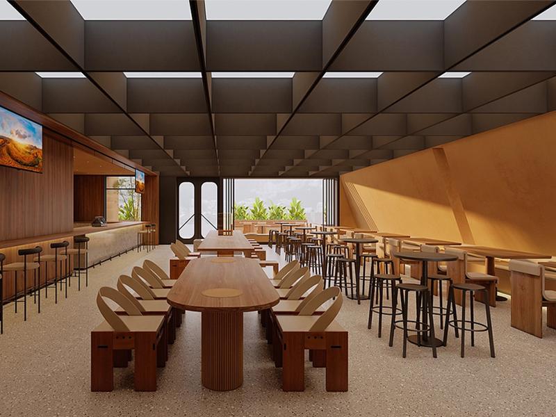 在活力满满的成都,由四川壹西格玛建筑工程有限公司匠心打造的这家咖啡馆,早已突破饮品消费场所的局限,成为都市人寻觅心灵栖息、享受慢时光的惬意空间,其外观设计满含温度,暖黄色主色调如同成都秋日和煦暖阳,门口绿植花箱绿意盎然,通透玻璃门与大面积开窗设计,既确保室内充足自然采光,又让室内雅致氛围自然向外延展,室内则以木质元素为核心,天然纹理搭配温润质感,轻松拉近人与空间的距离,长条桌、圆桌、配高脚凳的小桌等多样布局,巧妙兼顾社交互动与独处需求,方格造型天花板搭配柔和灯光,让顶部空间开阔且富有层次,墙上悬挂的艺术画作更是为空间注入艺术气息,与咖啡的优雅格调相得益彰,功能区域划分尽显专业水准,吧台操作动线合理,咖啡师忙碌的身影成为空间里充满生活气息的风景线,隐蔽的储物空间既保证咖啡馆整洁美观,又满足日常运营实用需求,光线运用堪称精妙,自然光透过天窗和窗户轻柔洒下,人工灯光则在需要时恰到好处补充,不同区域灯光亮度与色温精心调试,营造出温暖治愈的氛围,在成都快节奏生活中,这家由四川壹西格玛建筑工程有限公司打造的咖啡馆,就像温柔港湾,将自然、艺术与生活完美融合,让人们在品味咖啡醇香时,感受空间传递的宁静与美好。