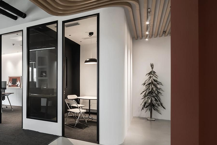 一踏入办公区域,首先映入眼帘的是开放办公区。这里的工位设计十分用心,浅木色的桌面搭配简洁的隔断,既保证了员工之间必要的交流,又能在一定程度上营造出相对独立的工作氛围,让每个人都能在专注工作与团队协作间自由切换。充足的自然光线透过大面积的玻璃窗洒入,照亮了整个空间,也为在此工作的人们带来了好心情,仿佛连工作的疲惫都被这阳光驱散了不少。