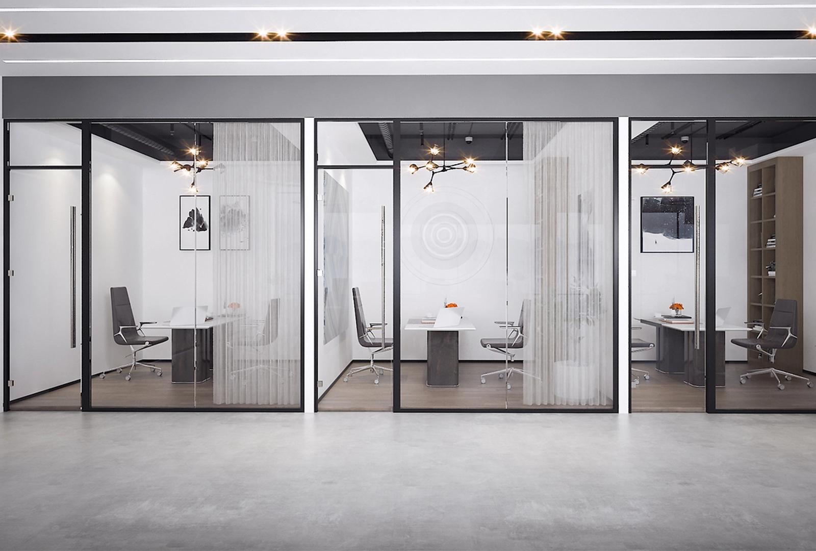 独立办公室设计则是专注与格调的代名词。玻璃隔断是空间的精妙分割者,它在保证空间私密性,让员工能专注处理重要事务的同时,又不阻隔光线,维持了空间整体的通透感。室内陈设简约而不简单,艺术装饰成为空间的点睛之笔。墙面装置以独特的形态、纹理,传递出艺术的韵律;挂画则用色彩与构图,营造出或宁静、或思辨的氛围,塑造出专注且富有格调的办公环境,助力决策者与专业人士高效开展工作 。