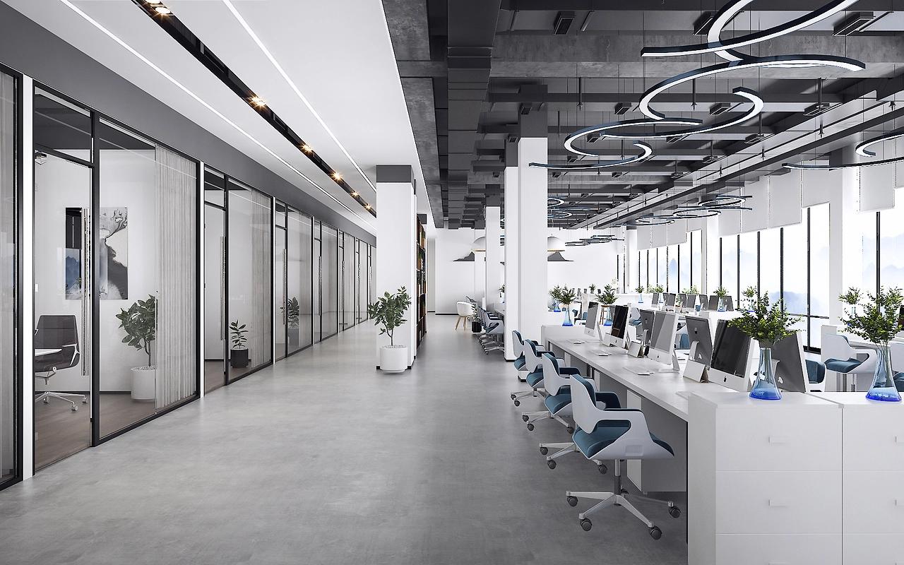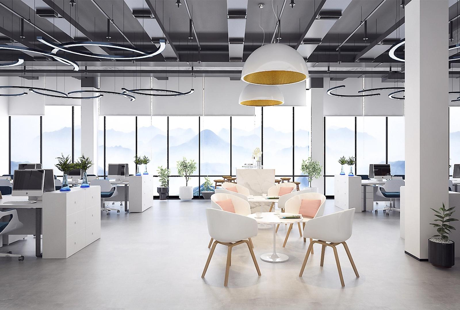 开放办公区是空间活力的核心。大面积通透玻璃墙成为天然的光线引入器,让阳光毫无保留地铺满整个区域,赋予空间明亮且通透的基调。简约设计的办公桌椅,以实用为根本,同时遵循人体工学,为员工提供舒适支撑。顶面裸露的管线打破传统吊顶的规整,与创意环形吊灯巧妙结合,将工业风的粗犷与时尚感的精致相融合。这种看似随性的设计,实则暗藏巧思,既展现出企业的创新基因,又营造出自由、开放的氛围,促进员工之间的交流协作,让思维的碰撞随时随地发生,激发团队的创造力与凝聚力 。