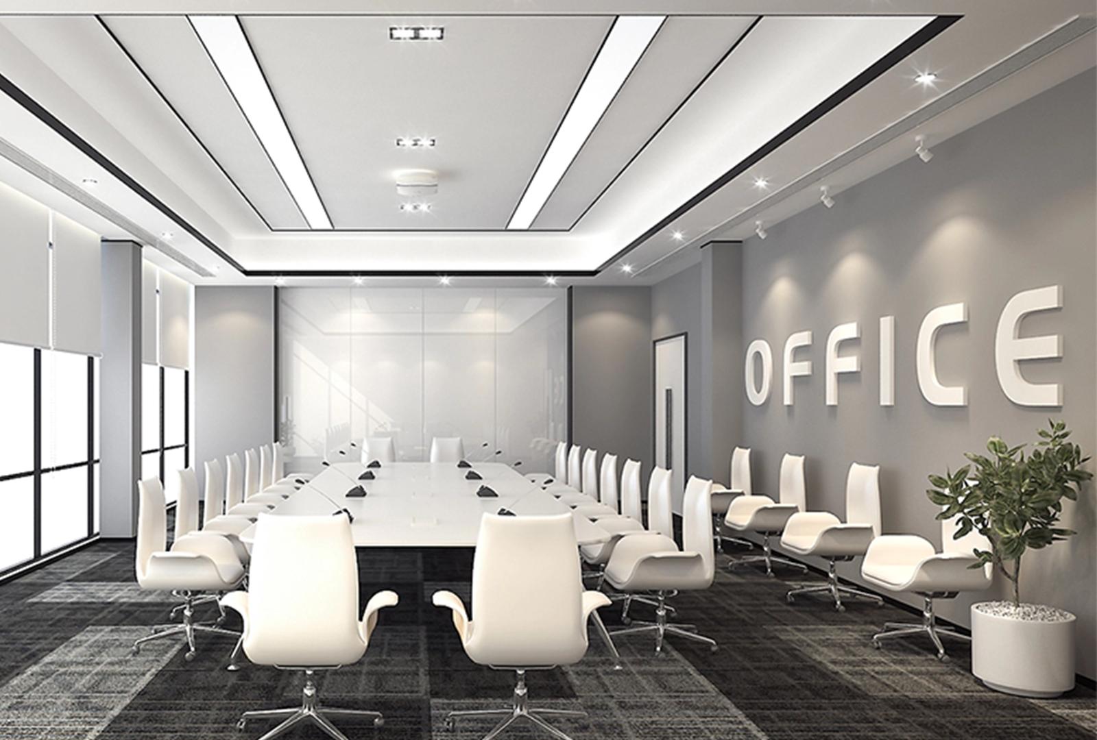 会议室承担着团队协作与商务洽谈的重要功能。规整的布局展现出秩序感,简洁大气的设计语言贯穿始终。墙面醒目的 “OFFICE” 标识,以立体的形式强化空间属性,成为视觉焦点,也彰显着企业的专业形象。充足的采光让会议过程清晰明亮,舒适的座椅排列有序,为参会者提供良好的体验,无论是内部团队头脑风暴,还是与外部伙伴商务对接,都能在此顺利开展,推动决策高效落地 。