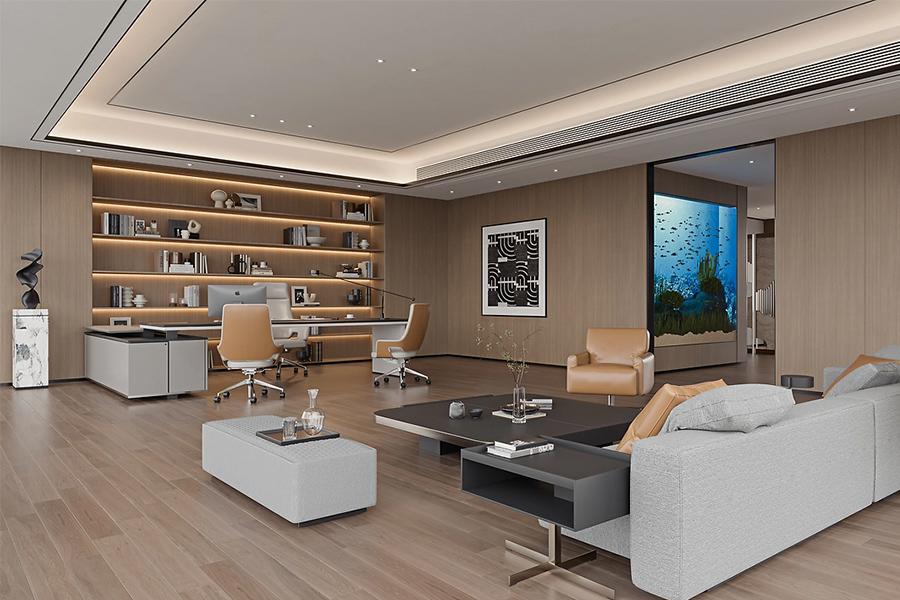 企业组织架构存在层级与专属需求,高管办公室、独立工作室等空间设计,需在秩序与个性间找到平衡。专属办公空间,以精致材质、沉稳色调构建,彰显身份与企业质感。在自贡市某集团公司总部办公项目中,四川壹西格玛建筑工程有限公司为高管团队打造的办公室,以胡桃木饰面搭配米灰色软包,搭配定制藏书墙与本地艺术家创作的水墨装饰画,既塑造出兼具办公与交流功能的私域,又融入了地域文化元素。