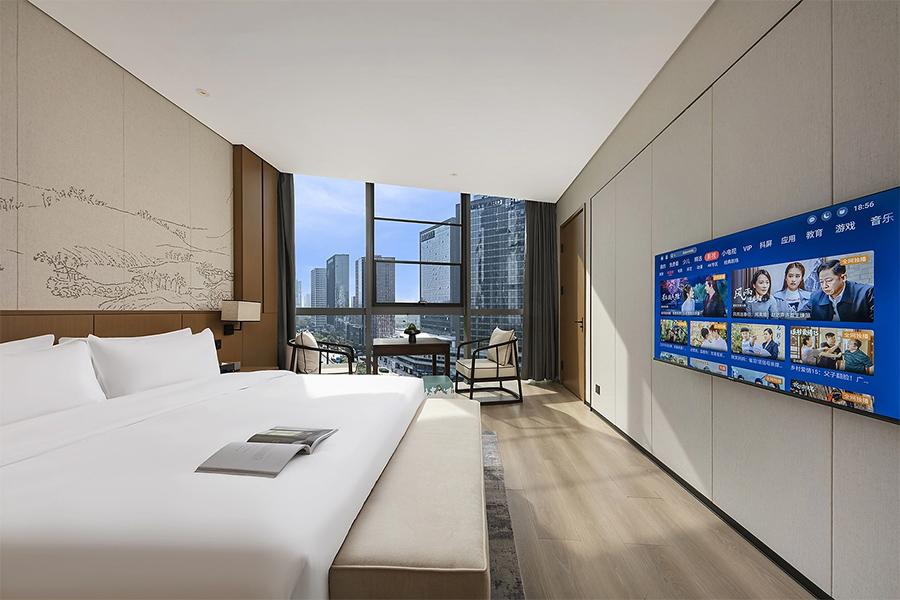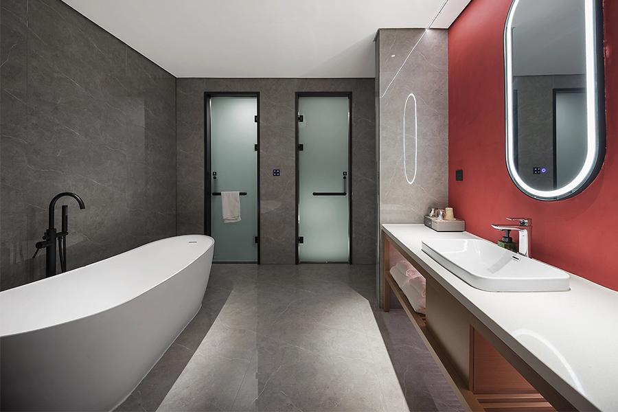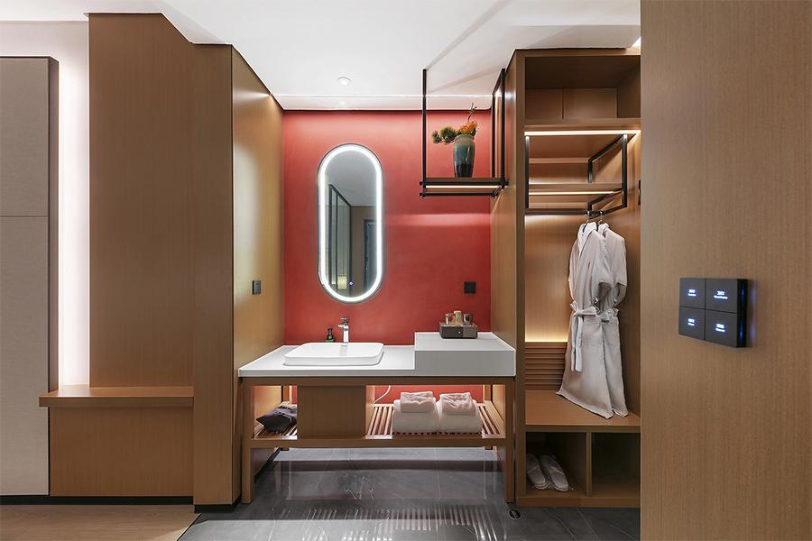 卫生间的设计,更是将实用与美观完美融合。鲜明的色彩搭配,打破了传统卫生间的单调感,带来视觉上的冲击与新鲜感。智能的灯光系统、整洁的储物空间,以及高品质的卫浴设施,都体现出酒店对住客体验的极致追求,让每一位住客都能在细节中感受到贴心与舒适。