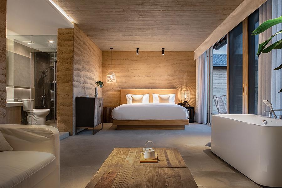 走进不同的民宿空间,仿佛开启一场场风格各异的艺术之旅。有的民宿偏爱自然质朴的风格,以原木、夯土等天然材质为主角。裸露的夯土墙,带着岁月沉淀的纹理,诉说着大地的故事;温润的木质家具,散发着淡淡的木香,给人以温暖、亲切之感。阳光透过宽大的窗户洒入,与室内的绿植相互映衬,营造出如同置身于山林间的静谧氛围,让人心绪瞬间舒缓,仿佛能听见自己内心的声音。
