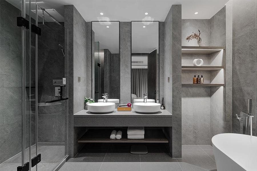 也有民宿走现代简约路线,线条简洁流畅,色彩搭配和谐雅致。大理石的纹理在灯光下熠熠生辉,简约而不失质感的家具摆放整齐,大面积的镜面设计不仅增强了空间的通透感,更在视觉上拓展了空间维度。墙上的艺术画作,为简洁的空间增添了一抹灵动的色彩,让整个民宿既有着现代都市的时尚感,又能给人带来心灵的平静,仿佛是为忙碌的都市人量身定制的一处可以放松身心的 “世外桃源”。