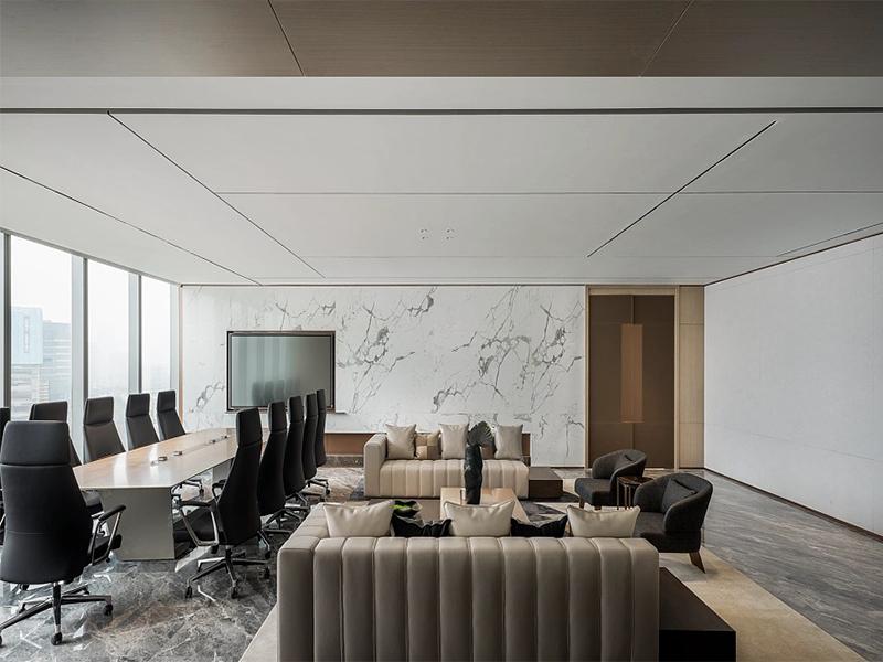 整个办公室在细节处尽显匠心,从木质格栅的光影层次到大理石台面的细腻纹理,从软装陈设的色彩呼应到灯光设计的明暗节奏,每一处都在实用与美学间找到完美平衡,也为成都办公室装修设计提供了兼具格调与实用性的参考范本,打造出一个既适合高效办公,又充满格调与温度的高端商务空间。