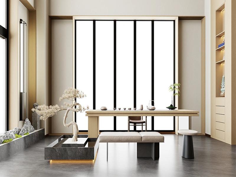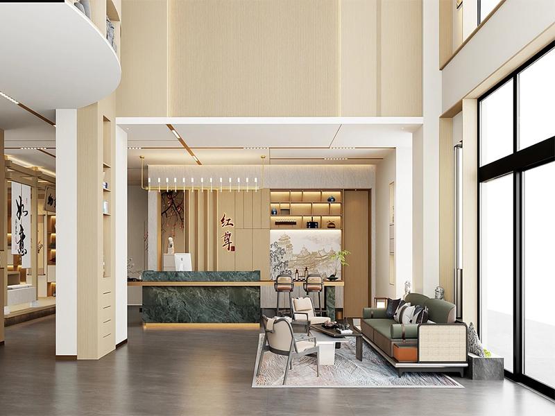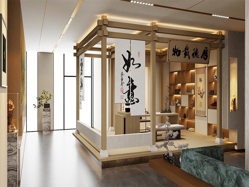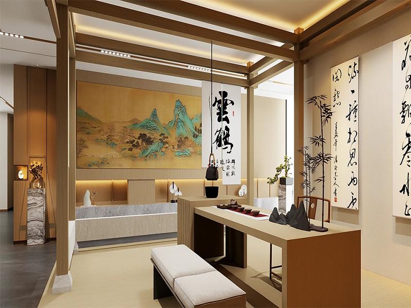 再看空间布局,更是酒店装修设计巧妙融合传统与现代精髓的生动体现。一方面,承袭了传统中式的对称、规整之美,带来秩序井然与庄重典雅的视觉感受,让人仿佛能触摸到中式美学的古典脉搏;另一方面,又融入了现代设计的简洁、通透理念,开放式的区域划分,搭配大窗户引入的充足自然光线,让整个空间既保有古典雅致的气韵,又彰显出现代生活的舒适与敞亮。在这里,你可以约上三五好友,于一方精巧的桌台前,沏上一壶氤氲着香气的清茶,在茶香袅袅升腾的氛围里,悠闲品茶、畅快交流,任思绪在传统文化与现代生活的边界自由穿梭;也能选择独自静处,细细端详书法的笔韵、画作的意境,让身心在这宁静、高雅且满盈文化底蕴的环境中,寻得片刻的休憩与灵魂的滋养,感受时光在此处的温柔流淌,体悟云南独有的禅意与新中式风格交织的别样魅力。