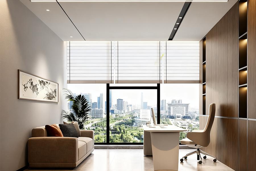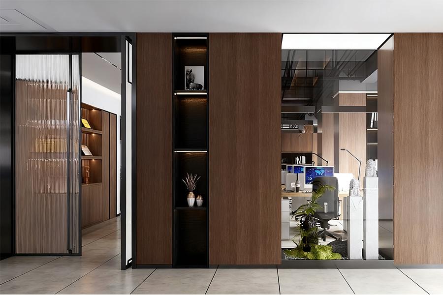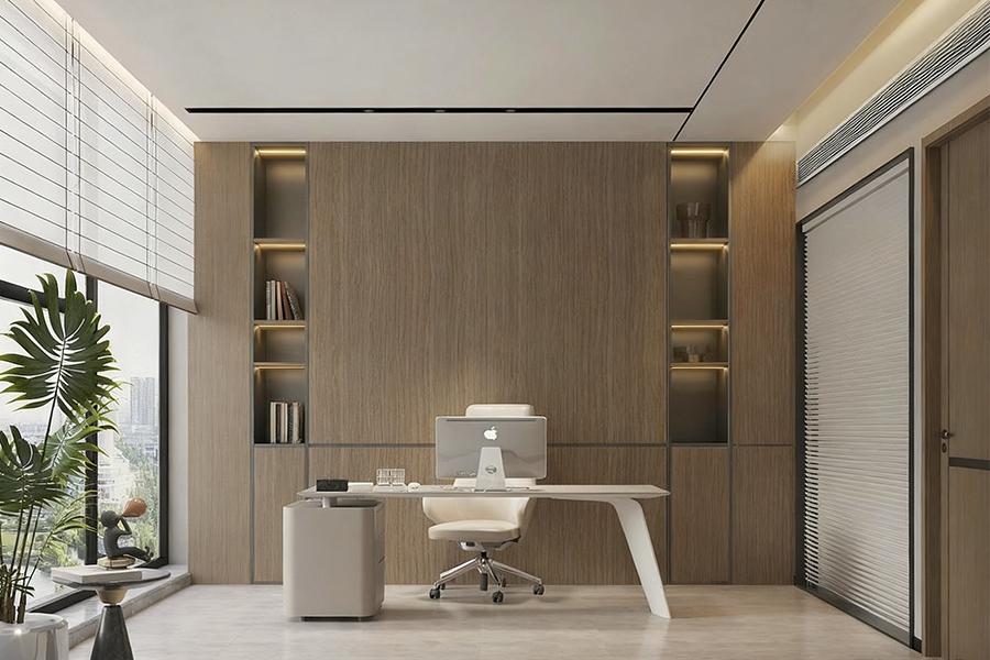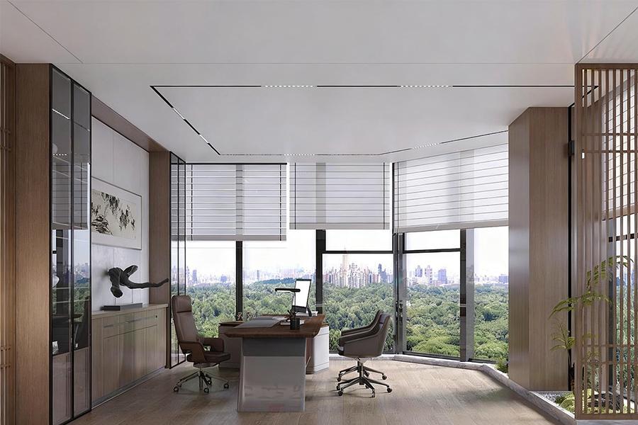 总经理办公室的设计,更是壹西格玛对 “私密与开放平衡” 理念的精妙诠释。空间布局上,既保证了领导者办公所需的独立与静谧,又通过巧妙的隔断和通透的材质,维系着与外部空间的视觉联系。木质元素的大量运用,呼应着成都这座城市骨子里的温润与包容,而简约大气的办公桌椅、陈列有序的书架,又彰显出企业的专业与严谨。墙上悬挂的书法作品或山水画作,在不经意间流露出成都的文化韵味,让办公空间多了几分雅致与从容,使领导者在运筹帷幄之时,也能感受到城市文化的浸润。