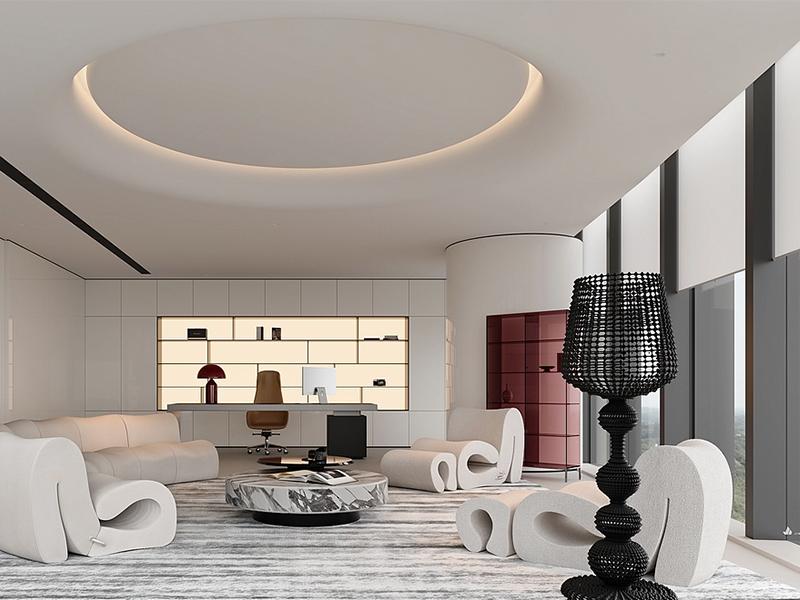 休闲区是壹西格玛为员工设计的 “放松充电站”,兼顾舒适与艺术感。弧形沙发配不规则茶几,布艺与木质碰撞出温馨质感;墙面挂抽象画作,增添艺术气息。区域紧邻大面积落地窗,壹西格玛选用双层中空玻璃,隔绝噪音与紫外线的同时最大化引入自然光,白天明亮通透,员工休息时可俯瞰城景,缓解疲惫。