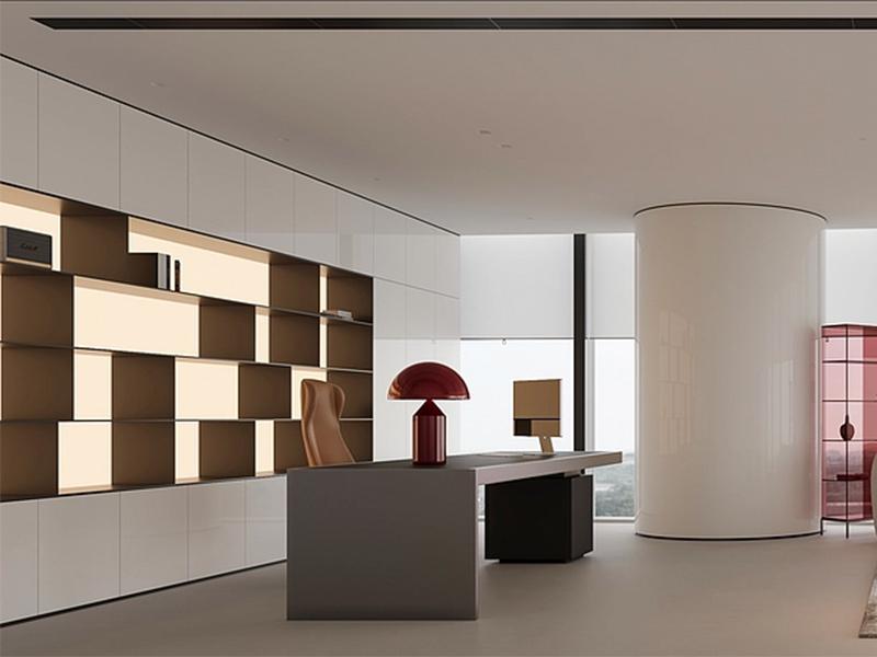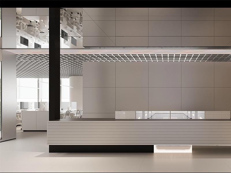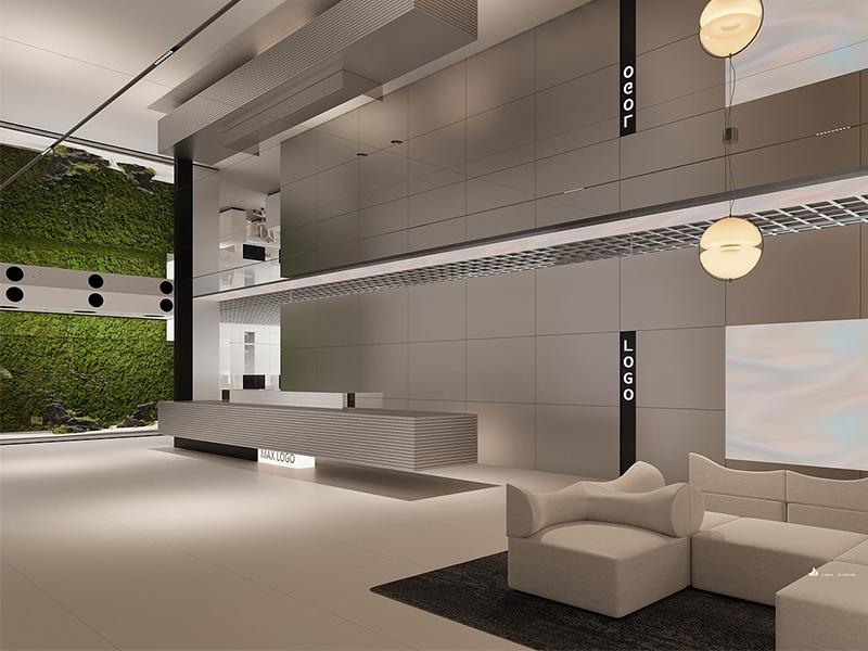 前台作为 “第一印象” 区域,壹西格玛装修公司着重强化品牌辨识度与层次感。接待台采用一体化岩板打造,线条利落,台面嵌入暗藏灯带,质感细腻;背景墙左侧预留品牌标识位,深色金属字与浅灰墙体形成对比,信息清晰;右侧引入垂直绿植墙,搭配白色格栅,注入自然生机,让访客直观感受专业与舒适。