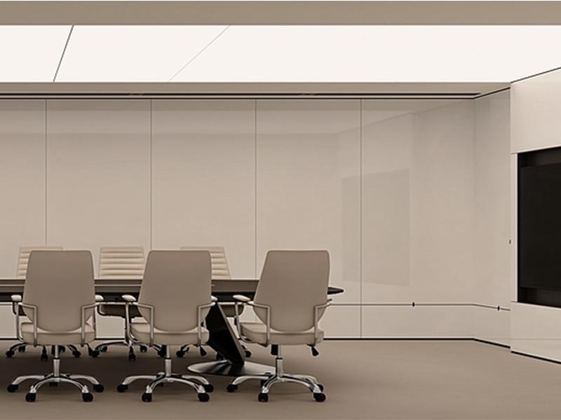 会议室作为商务核心空间,壹西格玛以 “功能优先、兼顾空间感” 设计。中央摆放 2.8 米实木会议桌,边缘圆润处理,安全且显品质;搭配 12 把人体工学椅,久坐舒适。顶部采用筒灯与长条吊灯组合,光线柔和防疲劳;墙面一侧装高清投影幕布,另一侧设隐藏式储物柜,保持整洁,满足各类商务场景需求。
