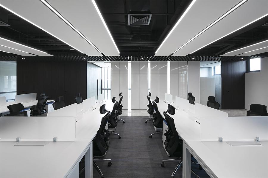 步入办公区域内部,四川壹西格玛的设计更是将功能性与美观性完美融合。开放式的办公布局,打破了传统办公空间的封闭感,促进了员工之间的交流与协作。白色的办公桌椅整齐排列,简洁大方,为员工提供了舒适的工作平台。桌面的隔断设计,在保证一定私密性的同时,又不阻碍视线与交流,巧妙地平衡了个人工作与团队协作的需求。天花板上,线条感十足的灯带纵横交错,不仅提供了充足且均匀的照明,更成为空间中极具现代感的装饰元素,勾勒出简洁明快的空间轮廓。