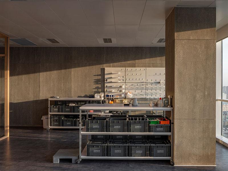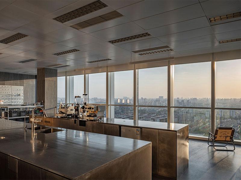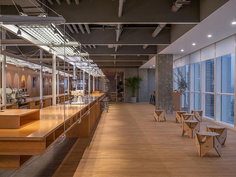 内部布置丰富多样,满足了不同的办公与休闲需求。专业的操作区配备了齐全的设备,推测可用于咖啡制作等创意活动。在这里,员工可以在工作间隙,亲手制作一杯香浓的咖啡,让浓郁的香气驱散疲惫,为大脑注入新的活力,也为同事间的交流增添一份惬意的氛围。