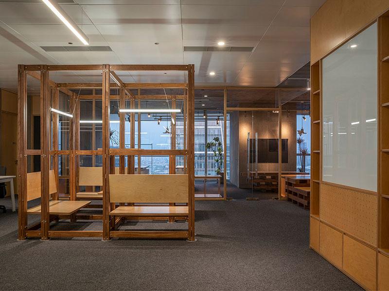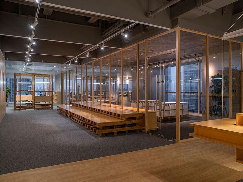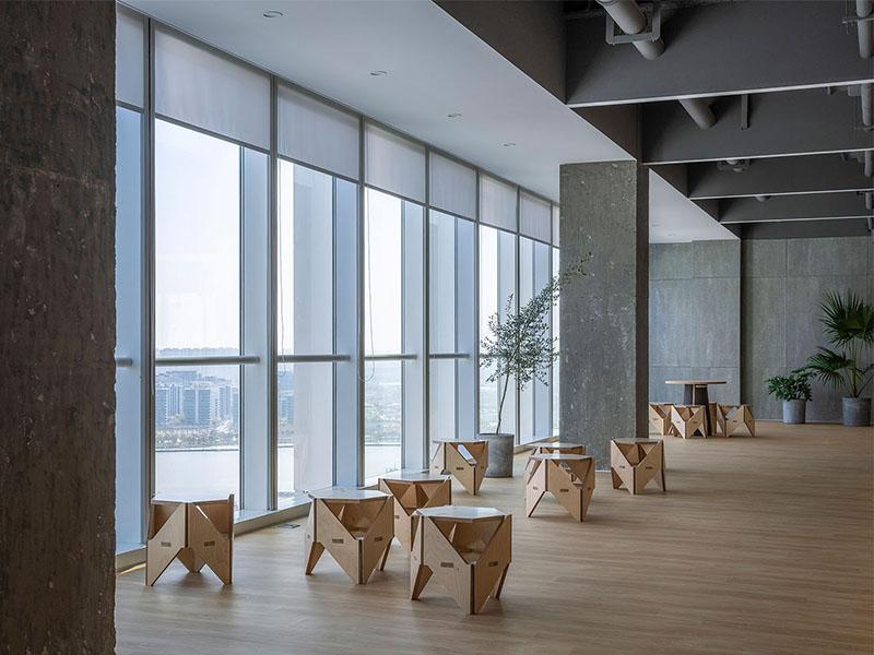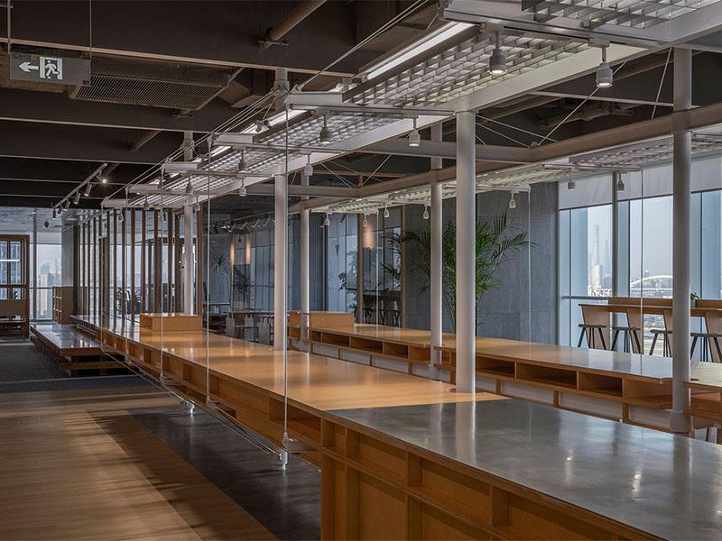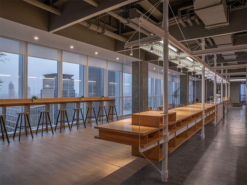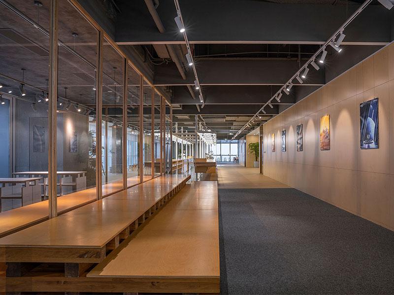 宽敞的开放式区域,摆放着精心挑选的木质桌椅,浅木色的温暖质感与空间整体的现代风格相得益彰。这里是团队交流、头脑风暴的绝佳场所,没有封闭空间的压抑感,大家围坐在一起,思维可以自由驰骋,创意的火花在轻松的氛围中不断迸发;同时,这里也是休闲放松的好去处,午后时光,捧一本书籍,坐在木质桌椅旁,透过落地窗眺望城市,享受片刻的宁静与悠闲。