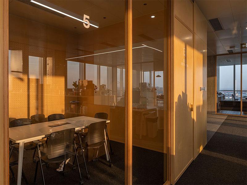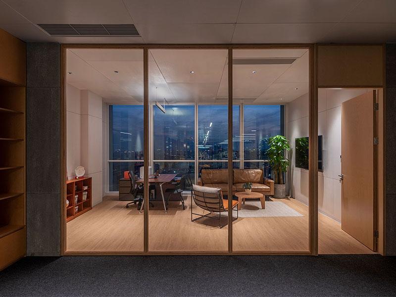 办公室最令人瞩目的,便是那大面积的落地窗。它们如同一幅幅巨大的城市画卷框,将车水马龙、高楼林立的都市景观尽数收纳其中。无论是清晨的第一缕阳光穿透玻璃,在地面投下斑驳光影,还是傍晚时分,城市被晚霞染成暖金色,在这里工作的人们都能随时与自然光线和城市风景为伴,采光极佳的环境不仅提升了空间的明亮度,更能为员工带来开阔的视野与愉悦的心情,激发无限灵感。
