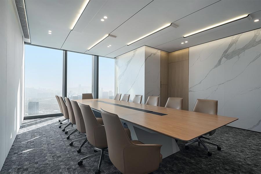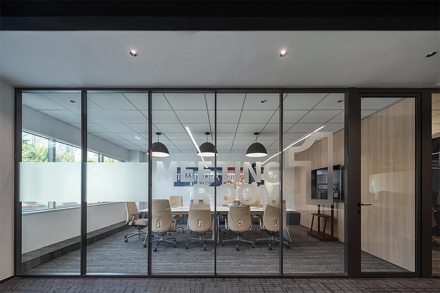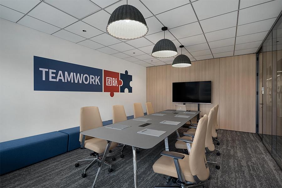会议室的设计同样尽显四川壹西格玛建筑工程有限公司的匠心。玻璃材质的隔断,既保障了空间的通透感,又巧妙维护了会议的私密性。柔和的灯光、宽敞的长桌与舒适的座椅,为高效的会议讨论筑牢了硬件基础。墙上 “TEAMWORK(团队)” 的醒目标语,时刻唤醒着团队成员的协作意识,在这样的空间里,思想的碰撞、创意的迸发都变得顺理成章。