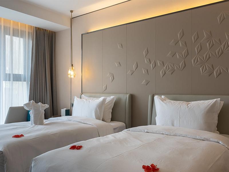 | 案例简介 | 成都市锦江区900平酒店装修项目中,客房作为核心体验空间,其设计充分体现了酒店设计方案对“舒适与品质共生”的追求,也彰显了专业工装设计对空间价值的深度挖掘。本次酒店装修设计以现代简约为基底,搭配浅色调为主的色彩体系,从视觉到体感为住客营造出舒适雅致的居住氛围,成为区域内酒店装修设计的典型范本。 |