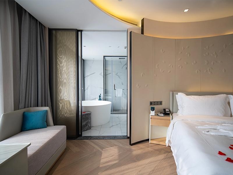 在成都市锦江区900平酒店装修项目中,客房作为核心体验空间,其设计充分体现了酒店设计方案对“舒适与品质共生”的追求,也彰显了专业工装设计对空间价值的深度挖掘。本次酒店装修设计以现代简约为基底,搭配浅色调为主的色彩体系,从视觉到体感为住客营造出舒适雅致的居住氛围,成为区域内酒店装修设计的典型范本。