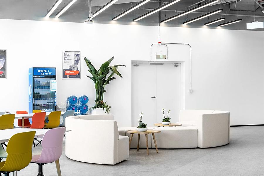 工作之余,休闲区是员工放松身心的港湾。色彩明快的座椅错落摆放,白色的弧形沙发柔软舒适,搭配木质小圆桌,营造出温馨惬意的氛围。一旁的自动售货机,随时为员工提供能量补给。墙上的海报与绿植,让整个空间充满了生活气息。在这里,员工可以暂时卸下工作的疲惫,或与同事闲聊片刻,或静静享受独处的时光,为接下来的工作积攒能量。四川壹西格玛将人性化关怀融入设计,让休闲区成为连接员工情感、提升团队凝聚力的纽带。
