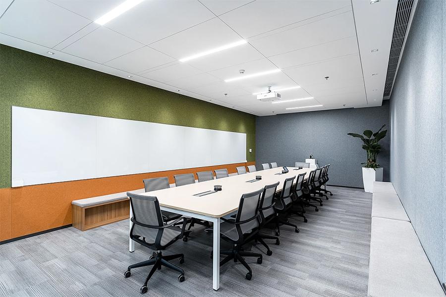 若需进行团队讨论或商务洽谈,会议室便是绝佳之选。室内色调丰富却不杂乱,绿色、橙色与灰色的墙面相互映衬,既缓解了视觉疲劳,又营造出轻松且富有创意的讨论氛围。长形会议桌宽敞实用,搭配舒适的办公椅,为高效沟通提供了保障。墙面的大白板,是灵感迸发的 “记录者”,可随时将头脑风暴的成果留存。顶部的投影设备,让远程会议、方案演示等需求都能轻松满足。在这里,四川壹西格玛打造的不仅是一个会议场所,更是一个能催生决策、凝聚共识的 “思想引擎”。