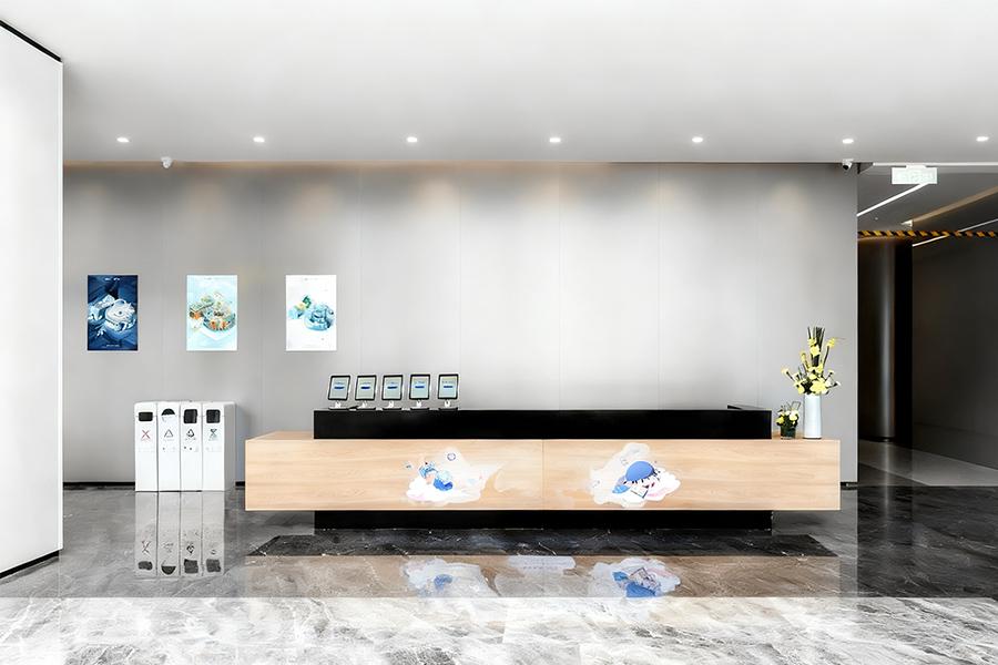 步入环投大厦的写字楼办公室,首先映入眼帘的是前台区域。浅木色的前台搭配黑色底座,简洁大气,其上灵动的卡通图案又为空间注入了一丝活泼气息。墙面悬挂的艺术画作,与旁边素雅的花艺相得益彰,瞬间消解了访客初入时的拘谨。一旁的智能设备整齐排列,既彰显着企业的科技感,也为高效办公埋下伏笔。这里,是企业形象的第一张名片,四川壹西格玛用精致的设计语言,传递出专业且富有温度的品牌态度。