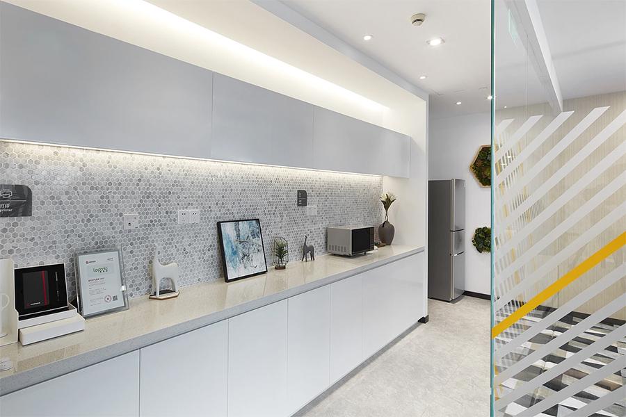 茶水间作为员工日常休憩、补充能量的小天地,设计得温馨而实用。整洁的橱柜、便捷的家电,让员工能在这里轻松制作饮品、存放食物。墙面的装饰与绿植的点缀,让茶水间如同一个小小的 “世外桃源”,员工们可以在这里短暂逃离工作的压力,享受片刻的悠闲时光,为后续的工作积攒能量。