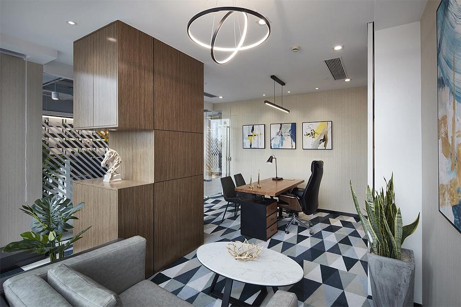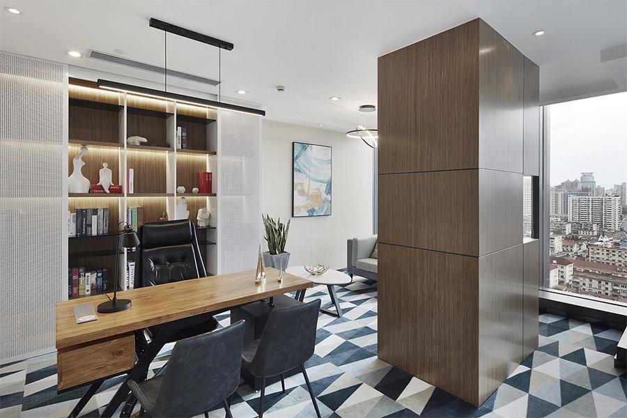 总经理办公室则是另一番景象,尽显沉稳与格调。木质元素的大量运用,传递出温暖与质感,搭配简约而不失设计感的办公家具,营造出高端大气的商务氛围。书架上整齐陈列的书籍与精致摆件,彰显出企业的文化底蕴与总经理的个人品味。透过窗户,同样能将成都市的繁华景致揽入怀中,工作之余,凭窗远眺,城市的车水马龙与蓝天白云相映成趣,为决策思考提供了一份宁静与灵感。