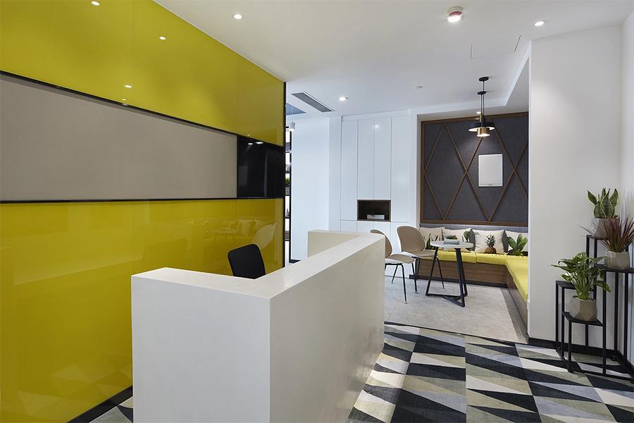 走进办公室,首先映入眼帘的是前台区域。明亮的黄色墙面瞬间抓住眼球,为整个空间注入活力与热情,搭配简洁大气的白色前台,形成强烈的色彩对比,既展现出企业积极向上的精神风貌,又给来访者留下深刻且专业的第一印象。旁边的休息区,柔和的灯光、舒适的座椅与绿植点缀,营造出温馨放松的氛围,让等待也成为一种惬意的体验,这是四川壹西格玛建筑工程有限公司在设计时,对空间功能性与人文关怀的双重考量。