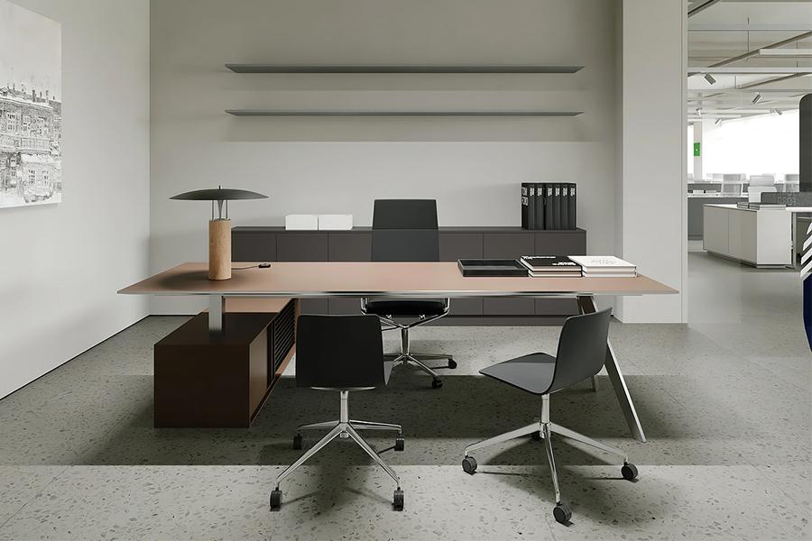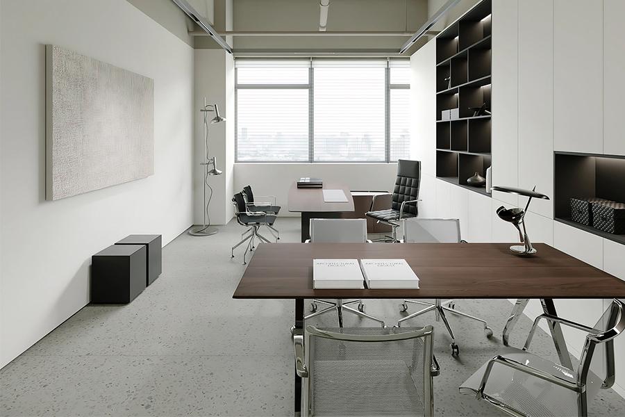 沿着动线深入,独立办公室展现出截然不同的气质。深色木质办公桌沉稳大气,搭配黑色皮质办公椅,将专业与质感悄然融合。墙面的收纳系统设计精妙,内嵌灯带勾勒出层次,让陈列的书籍与摆件也成为空间装饰的一部分。在这里,无论是深度思考还是商务洽谈,都能感受到空间赋予的静谧与力量。四川壹西格玛建筑工程有限公司精准把握企业对于独立办公空间的需求,以细节处的打磨,彰显出对品质的极致追求。
