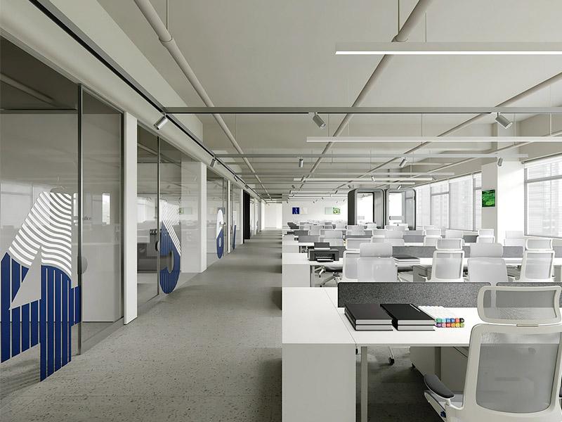 开放办公区作为员工日常工作的核心区域,壹西格玛装修设计以 “规整通透” 为原则,最大化释放空间价值。统一简洁的白色办公桌椅,搭配灰色隔断,在保障员工办公隐私的同时,避免了空间的压抑感,营造出开阔通透的视觉效果。照明系统采用轨道灯与线性灯组合设计,精准满足办公区域对明亮度的严苛要求;而裸露的天花板管线设计,则巧妙融入工业风元素,进一步强化了现代简约的设计风格,让开放办公区在高效实用的基础上,更具设计个性。