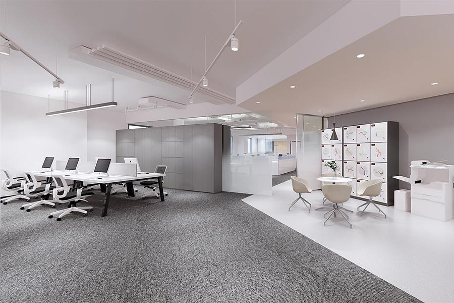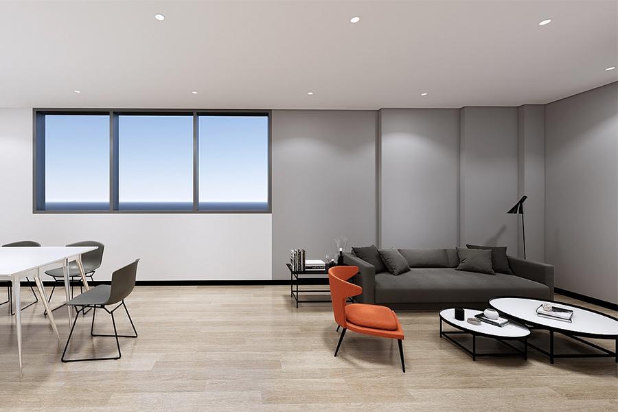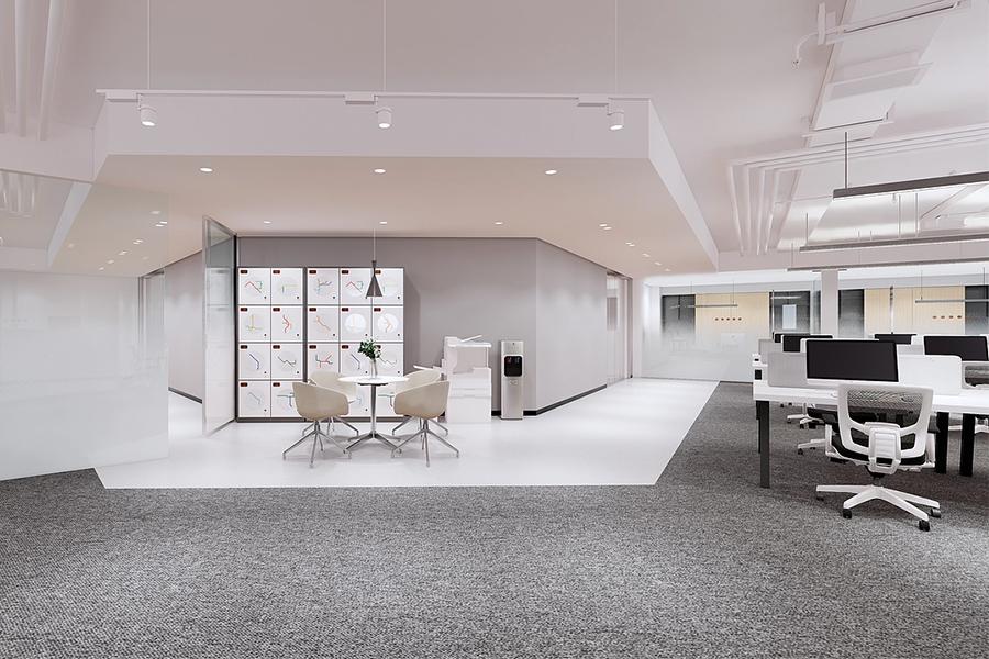 在材质的选择上,四川壹西格玛秉持 “少即是多” 的极简原则,通过白、灰、黑的色彩体系与木、玻璃、金属的材质碰撞,构建出高级且耐久的空间质感。墙面以白色乳胶漆为主,局部搭配灰色护墙板,既显整洁大气,又能通过细微的色彩差异划分功能区域。地面结合场景需求,在开放办公区采用灰色地毯,在休闲与会议区采用浅木色地板,在走廊等过渡区采用白色地胶,既划分了区域,又强化了空间的层次韵律。隔断与家具大量运用玻璃、金属与实木材质,如半透明玻璃隔断保证了采光,金属支架的桌椅凸显了利落,实木元素的点缀则为空间注入了自然气息。
