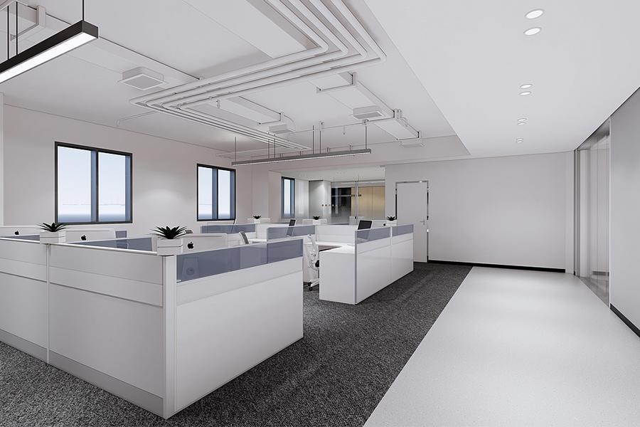 开放办公区是整个空间的核心区域之一,四川壹西格玛在此展现了对空间利用的极致思考。两种不同形式的工位布局,既保证了员工的工作效率,又兼顾了空间的通透感。带有半透明隔断的独立工位,为员工提供了相对私密的工作空间,避免了干扰;而开放式的联合工位,则促进了团队成员之间的交流与协作。地面的灰色地毯不仅起到了降噪的作用,还与白色的地胶形成了鲜明的对比,在视觉上划分了不同的功能区域。悬挂的长条形灯具与裸露的管线设计,为空间增添了一丝工业风的干练,与成都这座城市的创新活力相得益彰。