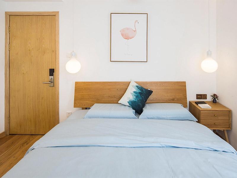 色彩的运用同样是壹西格玛的巧思所在。大面积的浅色调为空间奠定了清爽明亮的基调,浅蓝色的床品如天空的底色,为空间增添了宁静感;粉色装饰画、斑马纹抱枕又在简约中点缀出活泼的设计细节,让空间不至于陷入单调。这种色彩的轻重平衡,恰如生活的节奏,既有平淡的安稳,也有偶尔的跳脱。