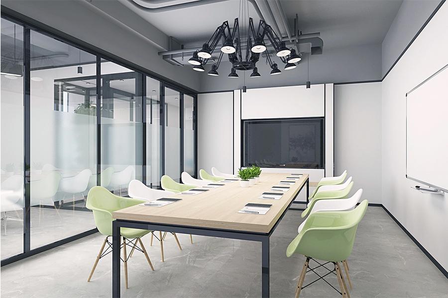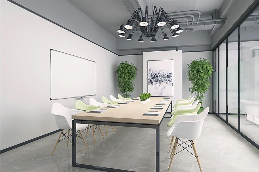 而两间会议室则是思维碰撞的舞台,壹西格玛以黑框玻璃保障隔音与通透的平衡,原木会议桌与黑白绿配色座椅相呼应,墙上白板与艺术挂画的组合,平衡了功能性与审美性,尤其是那组极具设计感的多头吊灯,机械臂般的造型充满工业活力,是壹西格玛为成都企业注入创新基因的缩影 —— 严谨会议中亦能迸发无界思维火花。