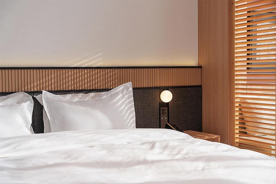 灯光设计更是 “暗藏心机”。公区的间接照明营造出静谧的氛围,仿佛将成都夜晚的灯火阑珊搬进了室内;客房的床头灯可调节亮度,满足阅读、休憩等不同需求;而露台的灯带,则在夜间勾勒出空间的轮廓,与远处的城市灯火遥相呼应。每一缕光线的角度、每一处光源的亮度,都经过四川壹西格玛设计团队的反复调试,只为给客人最舒适的视觉体验。