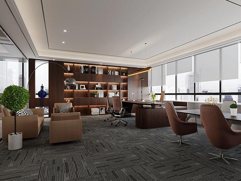 经理办公室的设计上,壹西格玛则展现出沉稳大气的风格特质。以深木色为主色调,搭配质感细腻的浅灰地毯,营造出庄重专业的商务氛围,彰显企业管理层的沉稳与睿智。定制化的书架不仅满足了收纳需求,更增添了空间的人文气息,舒适的沙发与高端办公桌椅的巧妙组合,让空间兼具办公与接待功能。大窗设计保障了充足的自然采光,开阔的视野不仅提升了空间的通透感,更能让使用者在工作之余放松身心,激发创作灵感。