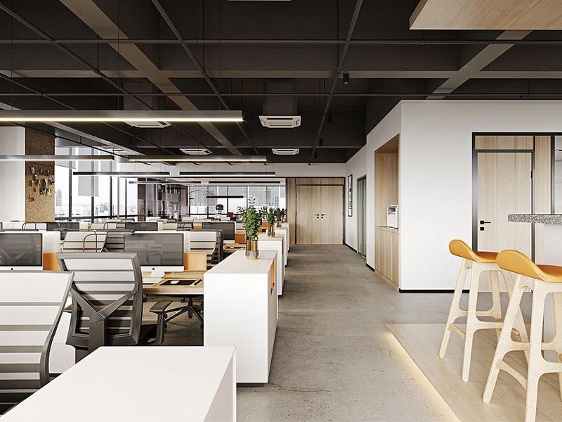 壹西格玛的装修风格在开放式办公区的设计中展现得淋漓尽致。整体采用简约大气的黑白灰作为基础基调,搭配温润的木色元素,中和了冷色调的疏离感,让空间既时尚又充满暖意。裸露的天花板管线搭配工业风灯具,营造出极具个性的 loft 风格,彰显企业年轻时尚的品牌气质。办公桌椅布局规整且富有设计感,既保障了员工的工作效率,又提升了空间的整体美观度。同时,精心设置的休闲角落成为空间的点睛之笔,彩色座椅的洽谈区、高脚凳休闲区为员工提供了放松交流的场所,而随处可见的绿植点缀则为硬朗的办公空间注入了自然生机,有效缓解了工作压力。