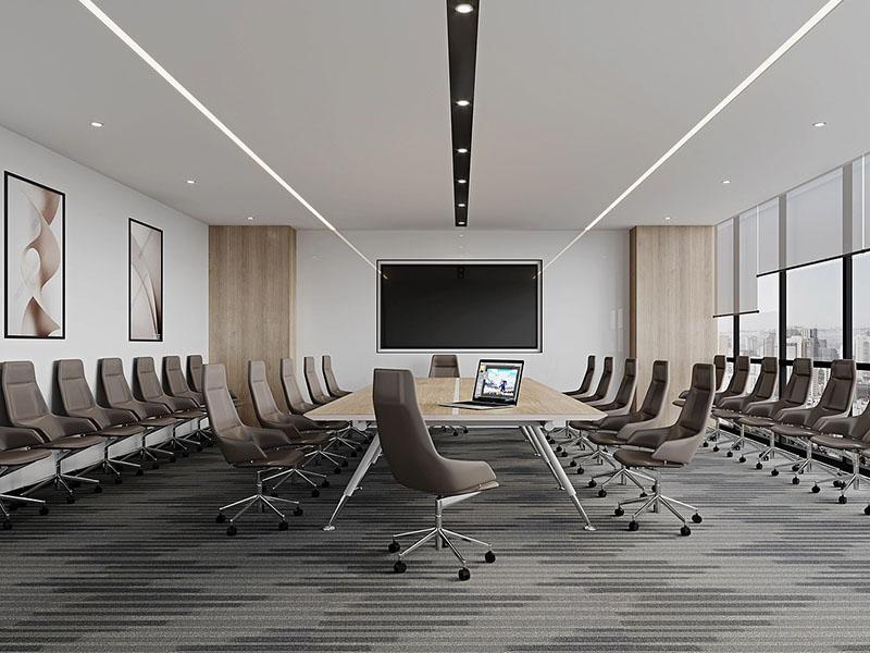 会议室作为企业商务沟通的核心场所,壹西格玛的设计同样独具匠心。采用简约的灰白配色与质感十足的木饰面板,营造出专业高效的会议氛围。线条感极强的灯光设计不仅满足了照明需求,更提升了空间的科技感,与现代企业的数字化办公需求高度契合。大型会议桌搭配统一的皮质座椅,充分满足多人会议的使用需求,而智能设备的无缝融入,如大屏显示器、笔记本电脑等,为高效会议提供了有力保障,展现了壹西格玛对现代办公需求的精准把握。