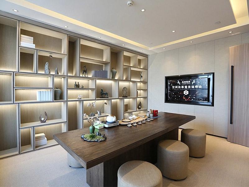 在私密洽谈与文化展示场景中,壹西格玛的设计功底更显细腻。几何隔断划分出的洽谈区,用色彩明快的座椅打破空间沉闷感,绿植点缀则为商务洽谈增添一份松弛;而中式风格的茶室接待区,以定制化展示柜陈列艺术摆件,长桌茶器营造雅致格调,既满足高端商务接待的仪式感,又传递出企业的文化底蕴。这种 “因需而变” 的设计思维,让每一处空间都成为企业气质的 “具象表达”。