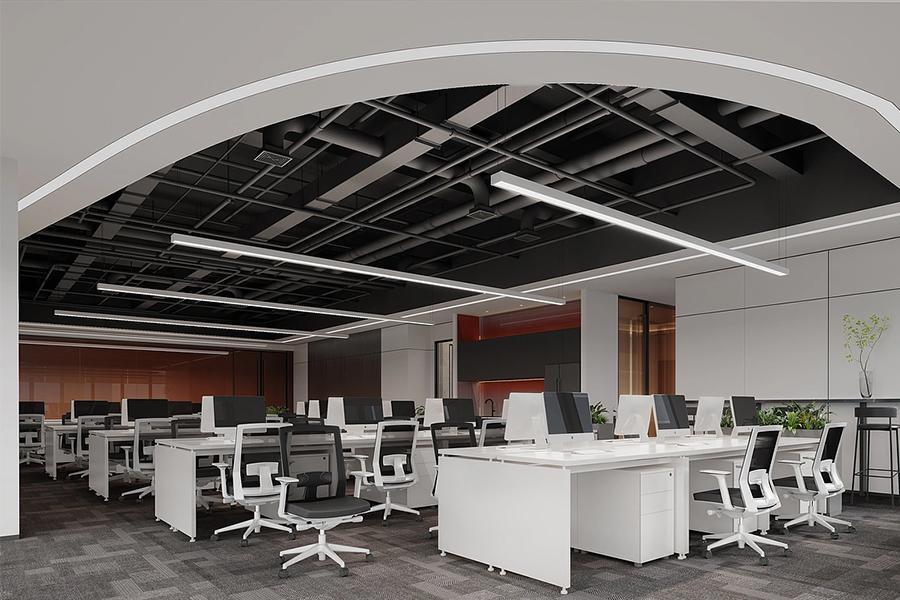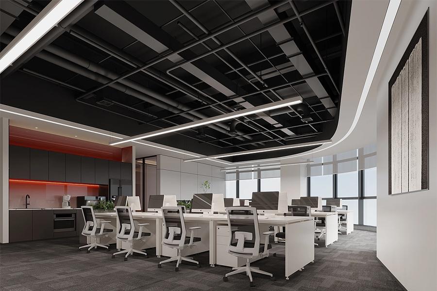 踏入这片办公场域,简约大气的质感便扑面而来。会议室中,没有冗余的装饰,灯光的层次与材质的碰撞却构建出十足的专业气场,金属与实木的材质对话、科技设备与空间线条的融合,每一处细节都在无声传递企业的格调与追求。这种 “减法设计” 的背后,是壹西格玛对品牌质感的深刻理解,它让品牌气质从视觉符号里跳脱出来,成为可感知的空间体验。开放办公区的 “裸顶工业风” 更具巧思,那些精心规划的管线与灯具,是为科创企业量身定制的 “工业美学”,黑白灰的高级配色营造出冷静专注的工作氛围,让员工的注意力自然聚焦于创意与效率本身。
