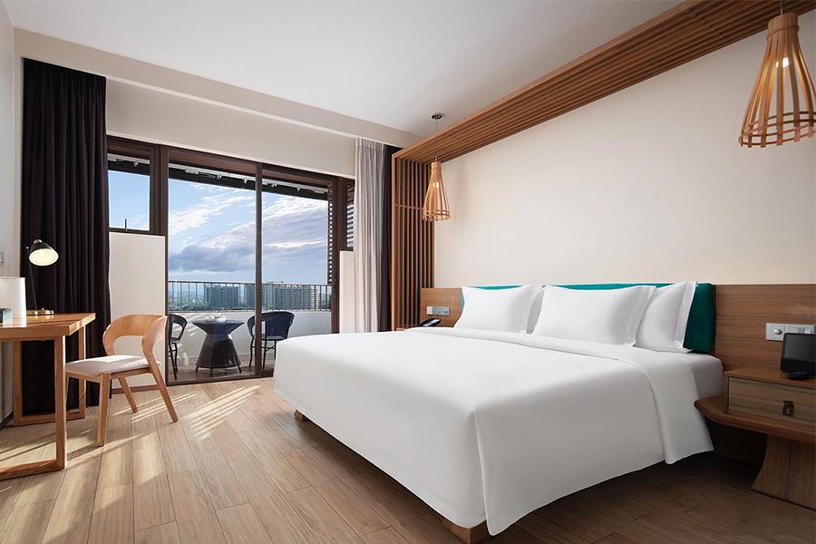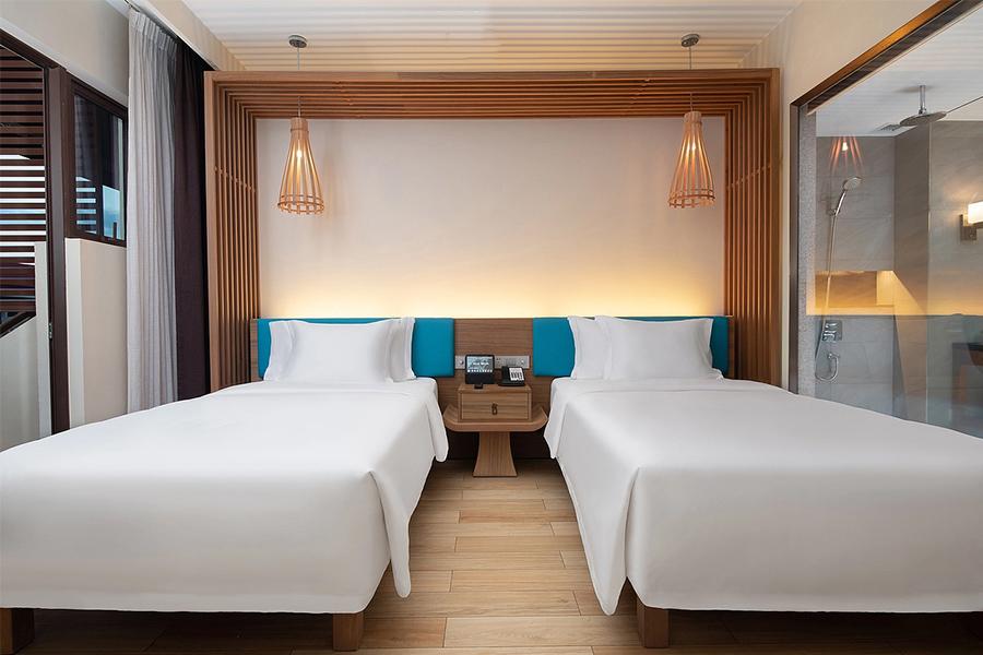 双床房的布局则兼顾了闺蜜出行与家庭旅居的需求,木质屏风巧妙划分空间,既保证了各自的私密性,又让整体氛围依旧通透。浴室的玻璃隔断设计更是点睛之笔,让光线得以自由穿梭,晨起时,阳光会先一步跳进房间,把人从梦中温柔唤醒。