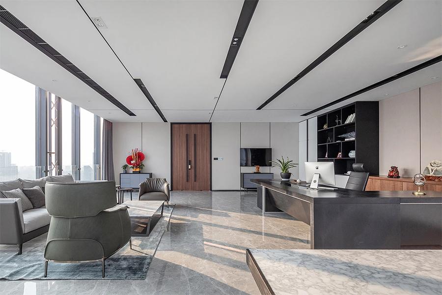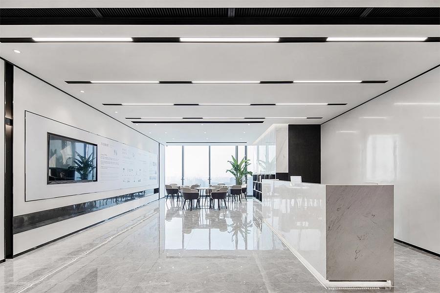 细究之下,壹西格玛的匠心处处可见。色彩搭配上,以黑白灰为基底,灵活点缀原木色或金属色,契合科创企业的科技属性,又饱含人文温度;灯光设计上,线性灯、筒灯等分层布局,让光线按需服务,办公区明亮高效,休闲区温馨柔和;功能布局上,开放办公、私密洽谈、领导办公等区域科学分区,动线流畅,宛如为办公室配备了一套 “智能导航系统”。