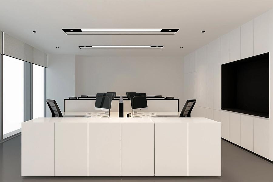 步入办公区,黑白灰的主色调构建起简洁大气的视觉基底,却又因原木元素的点缀、金属线条的勾勒而不显单调。开放办公区域内,壹西格玛定制的工位有序排布,白色柜体搭配黑色办公椅,形成利落的几何构图。线性灯带纵横交错,将光线均匀铺洒,既保障了办公区域的明亮通透,又为空间注入了现代科技感。员工在此可随时开展协作,亦能在专属工位上专注深耕,空间的弹性设计让创意与效率双向奔赴。