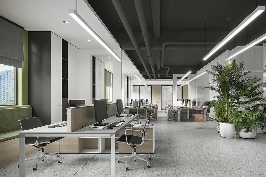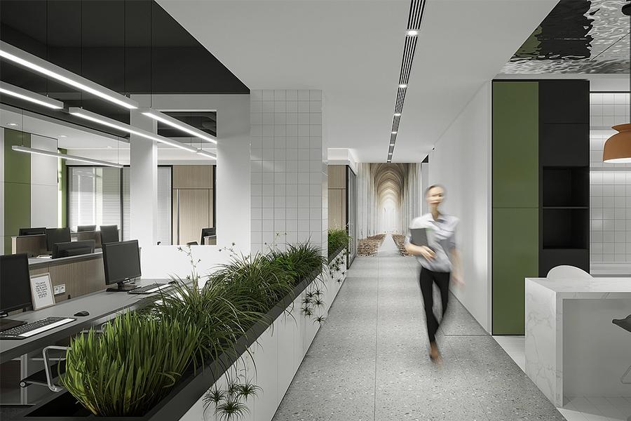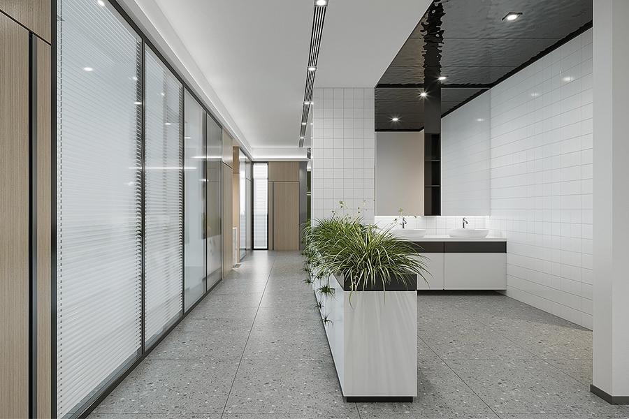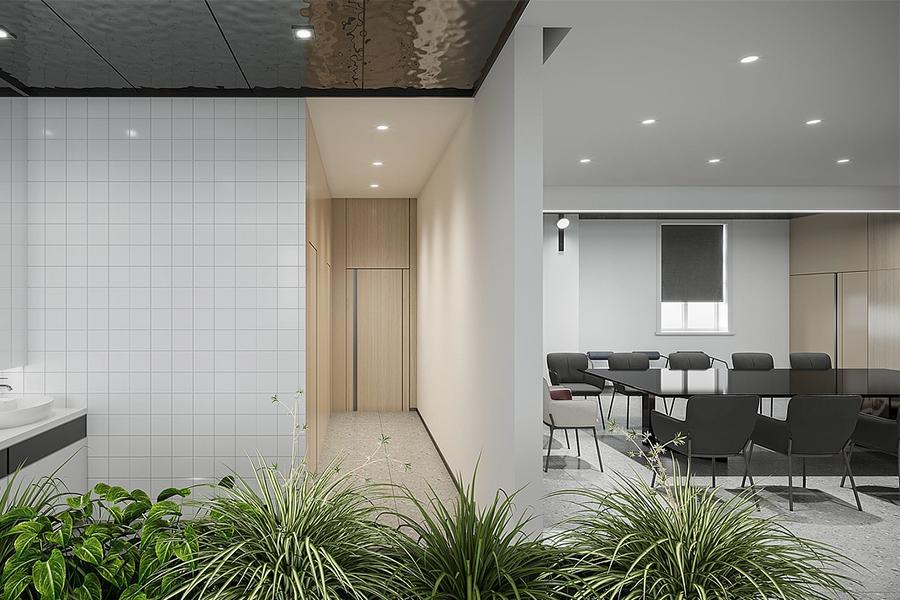 走廊与附属空间同样暗藏巧思,玻璃隔断让光线自由穿梭,像青羊的风掠过街巷般通透,绿植造景沿着动线生长,每走一步都有新鲜的绿意入眼。水波纹吊顶在不同区域的延续,让整个空间有了线索般的呼应,仿佛锦江水一路流淌,把各个功能区串联成了一个有机的整体,这便是四川壹西格玛的设计野心 —— 让青羊区富力中心的办公室,不止是办公的地方,更是一个有故事、有情绪、有归属感的职场家园。
