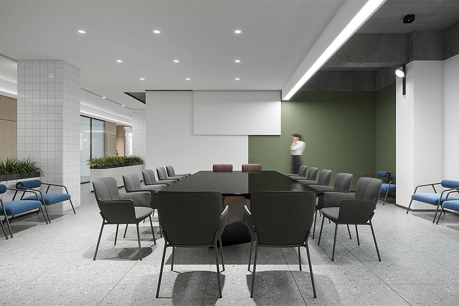 会议室的风格则是沉稳与灵动的博弈,黑色的长桌气派十足,周围的座椅简约又不失格调,墙面的绿与白撞出视觉惊喜,像把青羊区的公园绿意裁了一块嵌进了商务谈判的严肃里。在这里谈合作,既有决策的庄重,又有灵感迸发的轻快,四川壹西格玛用设计语言,重新定义了商务洽谈的空间情绪。