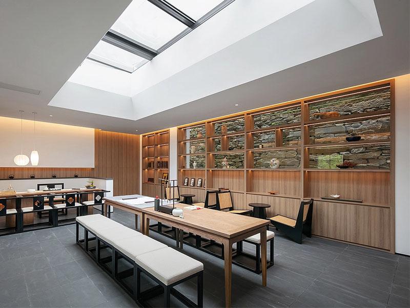 空间布局上,壹西格玛深谙 “框景” 之道。大面积落地窗与玻璃门将户外山林、沙漠等景观 “拉” 入室内,使自然成为动态壁画。客房内家具疏朗通透,休息区、办公区划分清晰却不割裂,既满足实用需求,又不遮挡观景视线;公共区域如茶室,以古朴木质桌椅搭配简约线条,在光影流转中营造出远离喧嚣的静谧感。这种设计让居住者视线自由穿梭于室内肌理与室外野景,实现建筑与自然的双向奔赴。