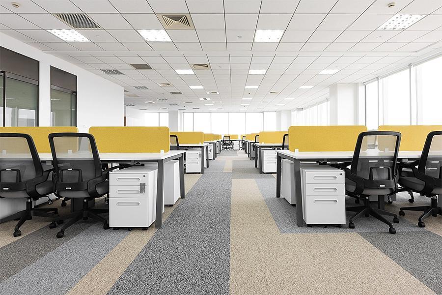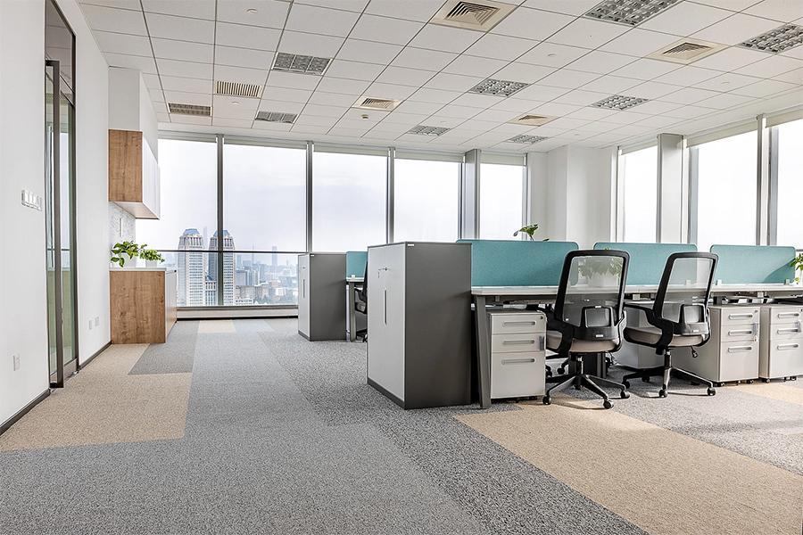 推开这间双流区办公室的门,大面积的全景落地窗率先攫取视线 —— 澄澈的玻璃将双流的城市天际线妥帖纳入室内,自然光循着晨间日光倾洒而入,让开阔的办公区始终浸在柔和明亮的氛围里。这里没有冗杂的装饰,浅灰与米白交织的地毯铺就舒适基底,简约的吊顶搭配嵌入式照明,既保障了充足光线,又让空间更显利落通透;而错落分布的绿植,恰好为理性的办公场景晕染出自然生机,让职场的节奏多了几分松弛感。