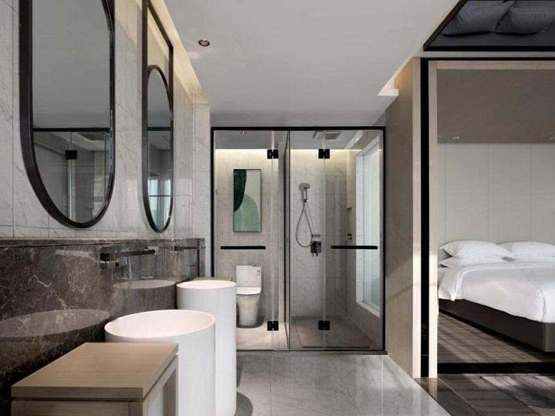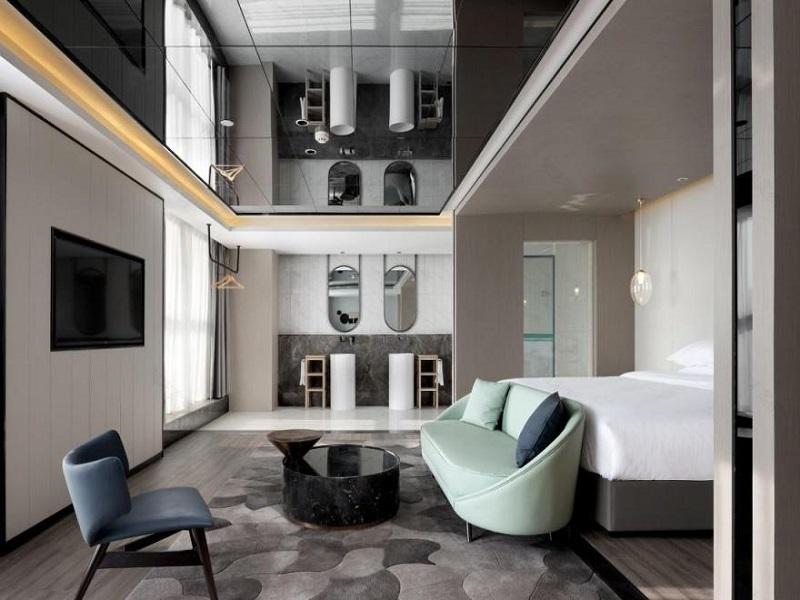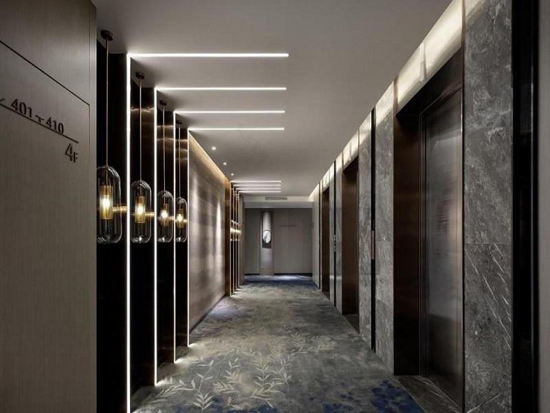 | 案例简介 | 酒店外观门头的设计大量运用玻璃幕墙,让空间更通透、视觉有延伸感,铝单板的材质使造型更加简洁、现代。颠覆了传统的酒店入户形式,从侧面进入,与大堂之间形成具有仪式感的艺术过道,增加了客人入住的体验感。 |