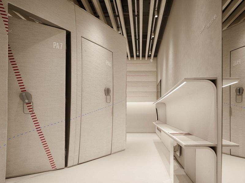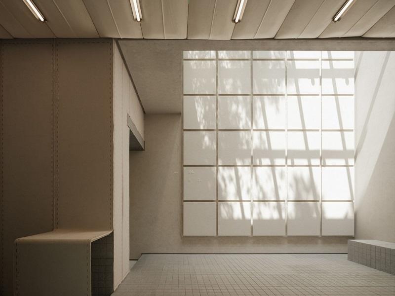 改造过程中,我们保留了部分原始建筑结构,重新构图后它们成为了整个设计方案的逻辑支点。设计之初,我们从伯纳德·屈米所论述的“事件空间”概念中汲取灵感,摸索出一种含混、不定性的空间状态,激发店铺与街区之间行为和活动的发生。最后,我们尝试暂时“忘记”建筑本身,通过对品牌基因和服装的观察解构寻找能够明确建筑形态的元素,从而取得设计与品牌的一致性——以直截了当而不失细节的执行手法塑造一个兼具形式美、事件性和品牌辨识度的线下空间。