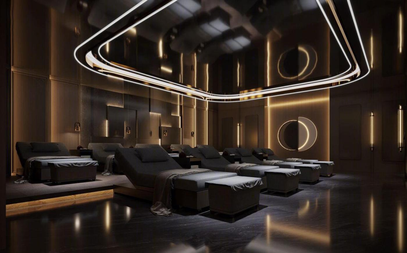 在成都 SPA会所装修设计旨在打造一个高端、舒适且独具魅力的空间。整体色调以灰金色为主,这种色彩搭配营造出一种高贵而大气的氛围,彰显出会所的品质与格调。
